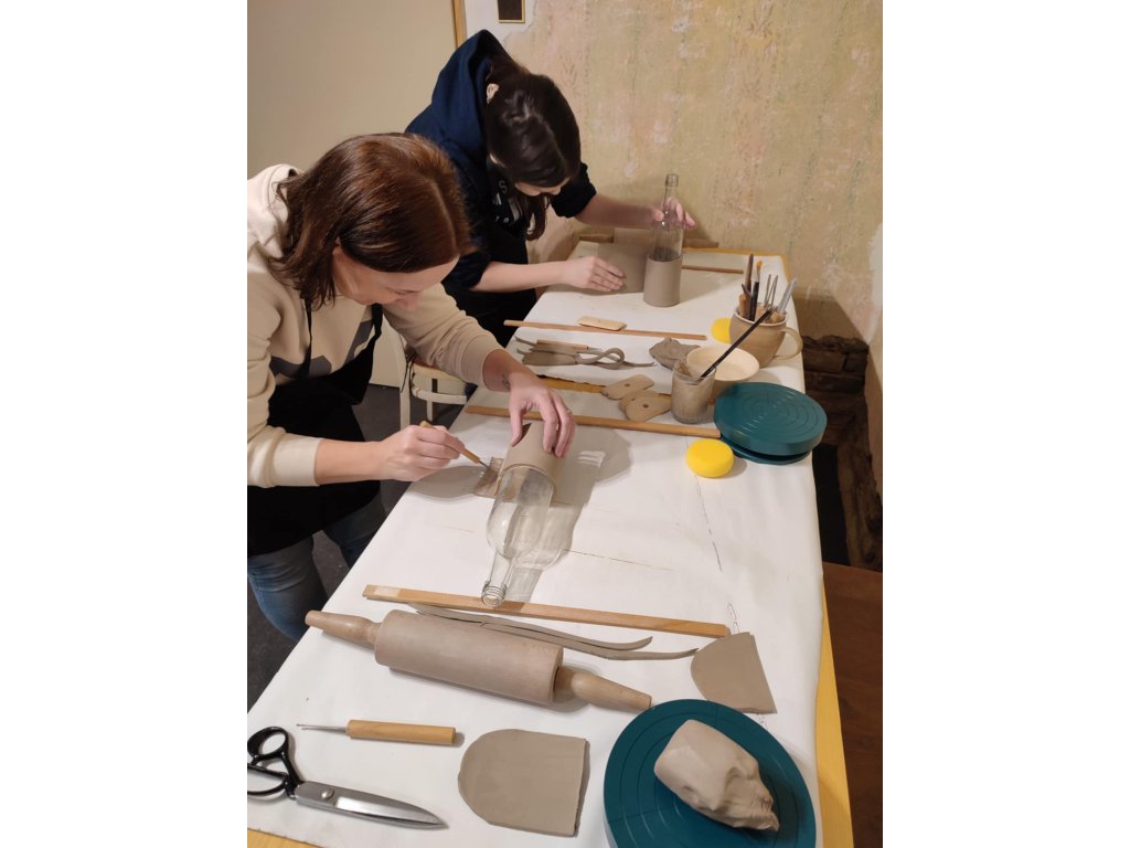V ceně workshopu veškeré pomůcky, výpaly, transparentní glazura, lektorné.